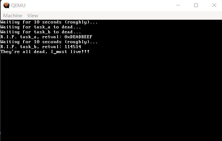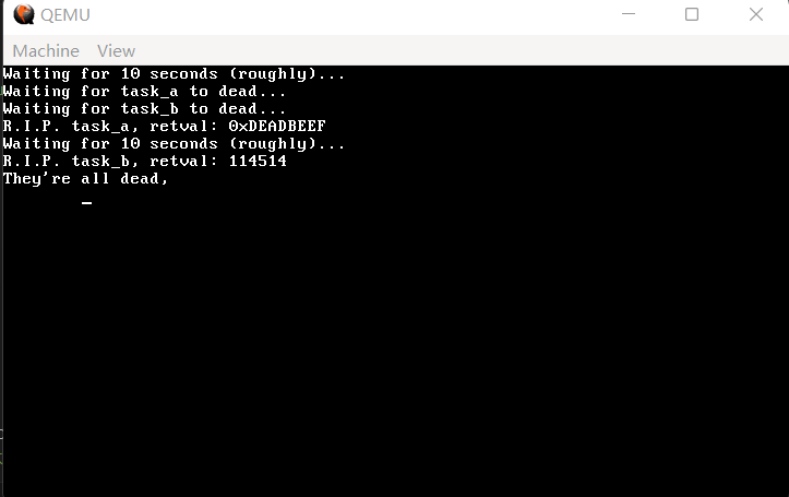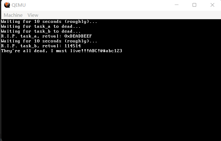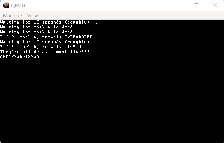 编译,运行,待 task_c 输出后连按数次退格,效果如下: