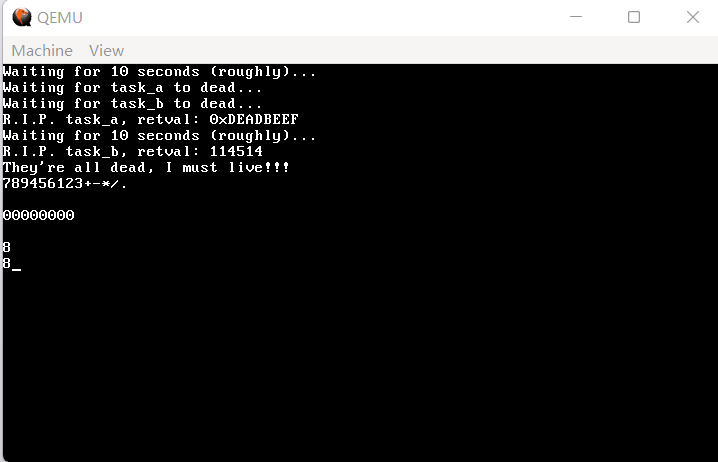 我们看到,现在的OS启动时屏幕一片空旷,它成了一个完完全全的打字机。这也算是我们人机交互的初步成果了。